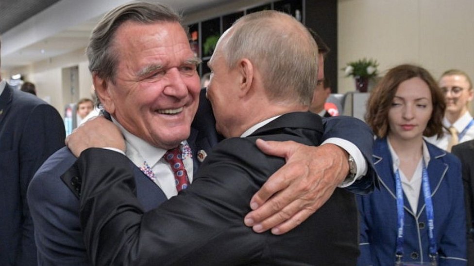Шредер беше германски канцелар од 1998 до 2005 година, а по заминувањето од функцијата се поврза со руските енергетски гиганти Газпром и Роснефт. Тој и Путин се пријатели долги години.