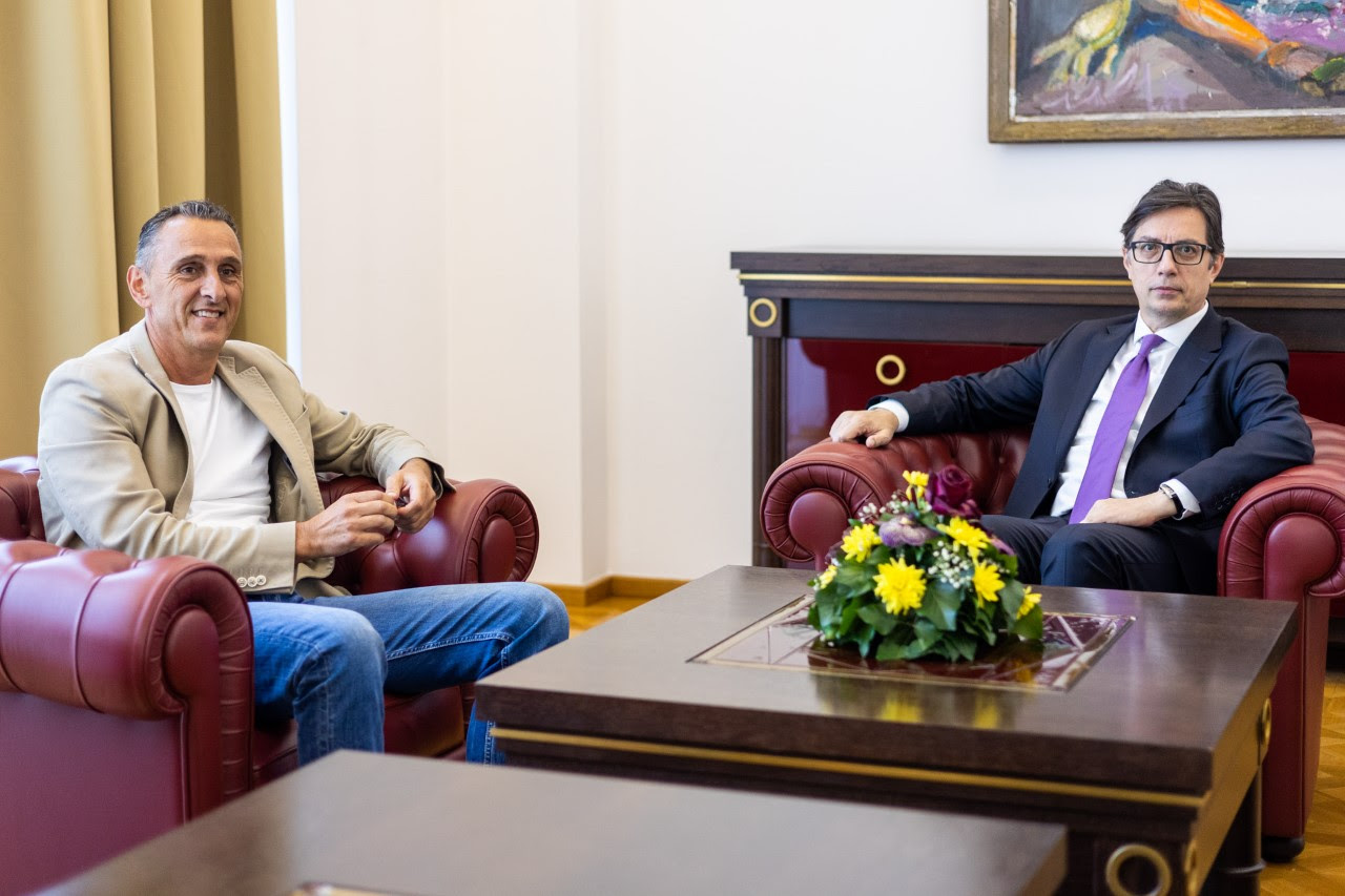 Претседателот на државата Стево Пендаровски денеска го прими Горан Стојановски, претседател на Националната пливачка федерација.