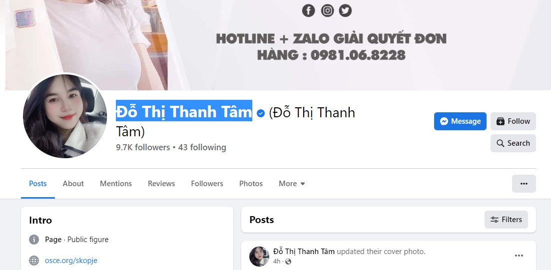 Фејсбук страницата на Мисијата на ОБСЕ (Организација за безбедност и соработка на Европа) во Скопје вчера била хакирана. ОБСЕ потврдува дека фејсбук-страницата на Мисијата на ОБСЕ во Скопје е хакирана. Ве молиме имајте предвид дека сите пораки кои доаѓаат од таа сметка до понатамошно известување не се авторизирани од ОБСЕ, пишува во нивната објава. По хакирањето страницата на Мисијата на ОБСЕ во земјава е преименувана во „Đỗ Thị Thanh Tâm“. Во моментов со ОБСЕ претседава Република Македонија. Претседавањето ќе трае во текот на целата 2023 година.