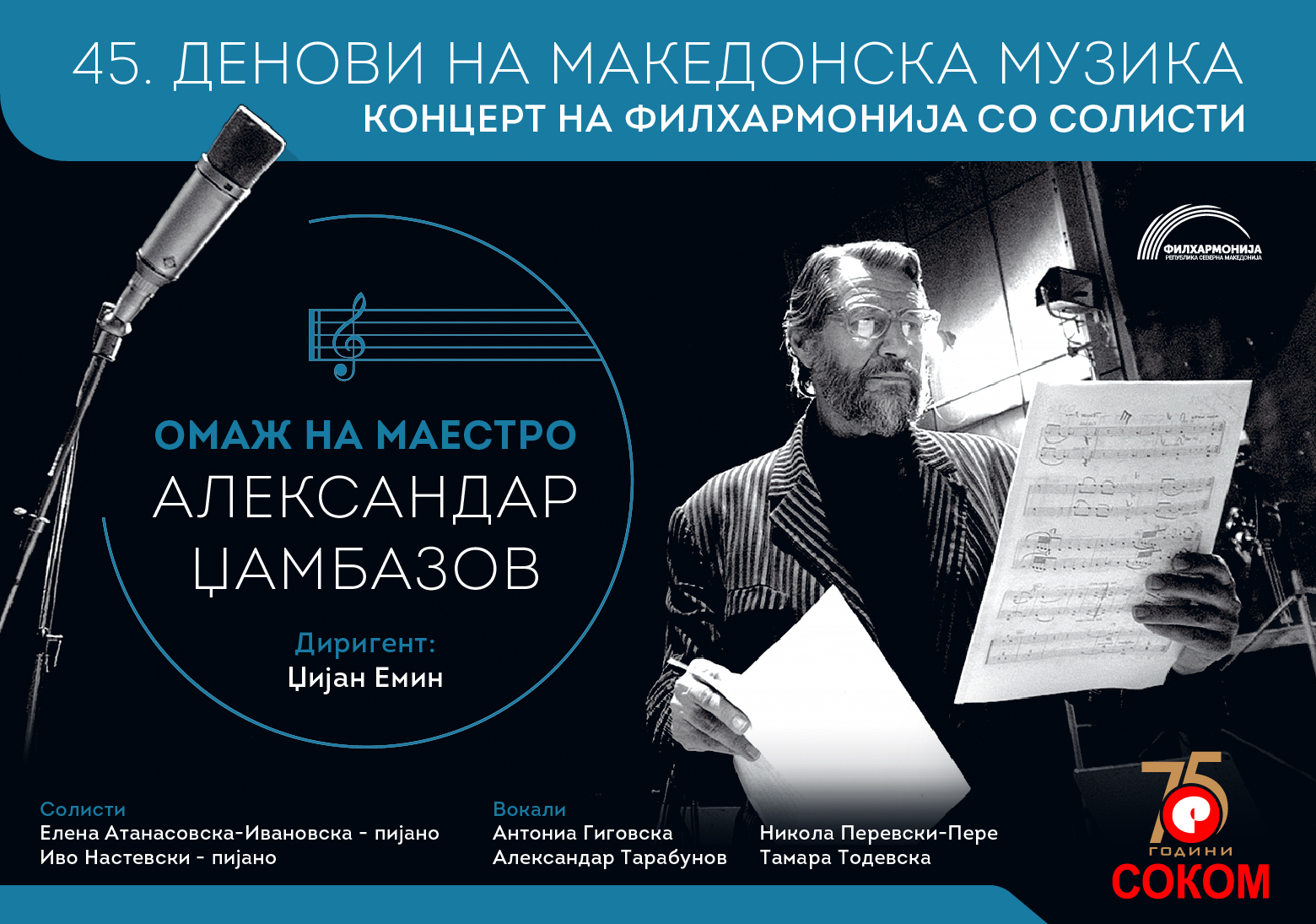 Со овој концерт оркестарот на Филхармонија, СОКОМ и пејачите кои ќе настапат на сцена ќе му оддадат признание и почит на македонскиот композитор и диригент – Александар Џамбазов, кој зад себе остави непроценлив музички опус.